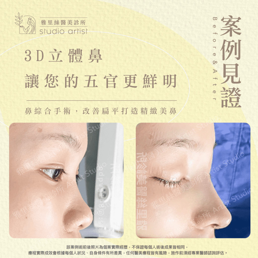 因為從小就是塌鼻,山根、鼻樑不明顯,鼻頭更是微微地上揚,國、高中時還曾被同學嘲笑小豬鼻,導致我一直以來都沒什麼自信。開始學會化妝後,鼻子仍舊是一個擺脫不了的遺憾,妝容無論怎麼修飾,鼻子天生的條件不足,依舊很難達成理想的狀態,因為長期的自卑,在生活上也造成不少困擾。於是自己就定下一個目標,出社會工作後一定要存錢改變鼻子的外觀!!終於 ~ 在28歲這年完成了自己的夢想,擺脫過去的扁塌鼻,不僅五官更加立體,平時也不用為了遮遮掩掩、更好看一點,而每天花大把時間在化妝上面。