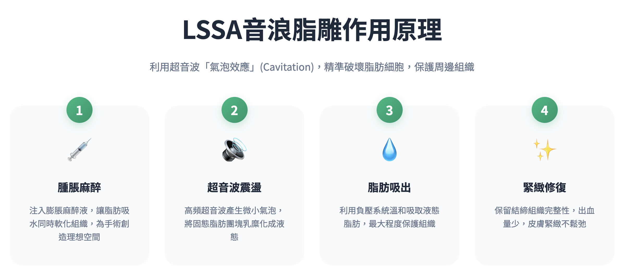 LSSA音浪脂雕採用最新第三代超音波溶脂技術,專為亞洲人體型與膚質設計。透過DeepSono安全專利與極細探針,實現真正的「精雕細琢」,開啟抽脂3.0新時代。