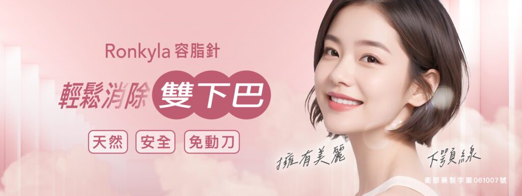 Ronkyla容脂注射劑是台灣本土藥廠研發製造的首款減脂注射產品,於2023年經台灣衛福部食藥署(TFDA)核准上市(衛部藥製字第061007號),專門用於改善成人頦下脂肪堆積所致的中度至重度隆起或肥厚外觀,因此也被稱為「台版溶脂針」。