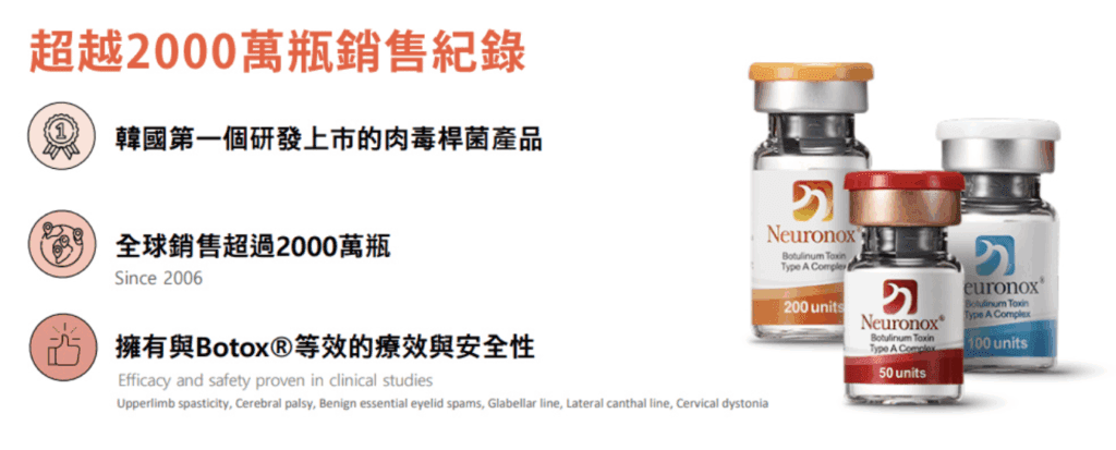Neuronox®優力柔是韓國Medytox公司研發的肉毒桿菌素,專為亞洲人的肌肉特性量身打造。自2006年在韓國上市以來,迅速成為亞洲醫美市場的寵兒,在韓國本土市佔率超過50%,是韓國銷售第一的肉毒品牌。