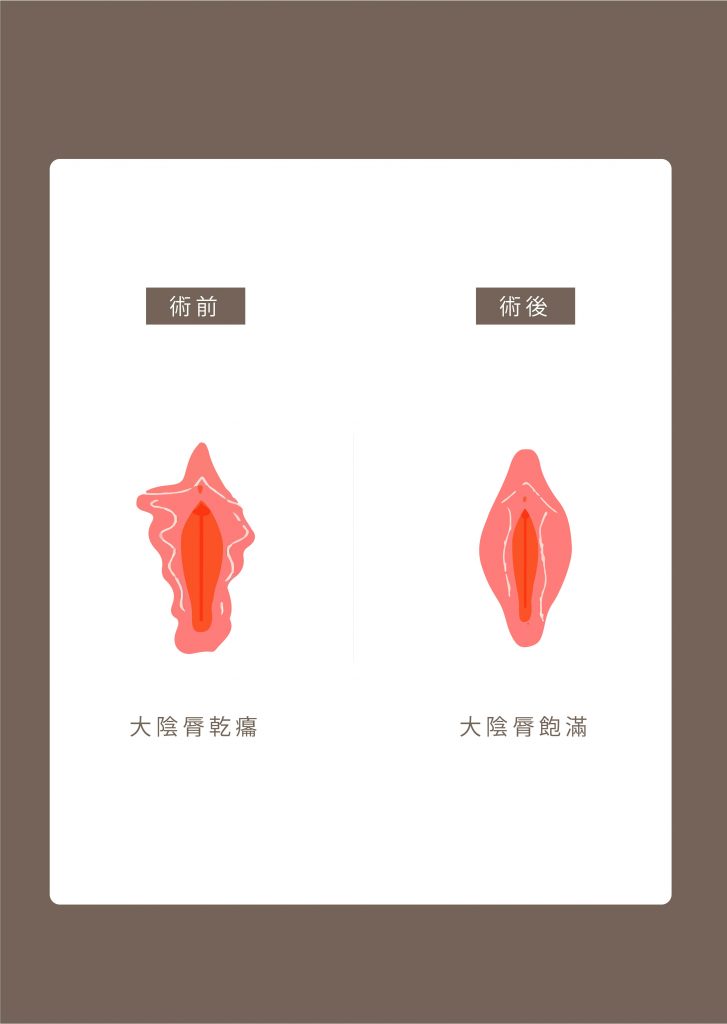大陰唇位居陰道的外在保護且兼具分泌潤滑的功能,在性⾏為的過程中,提升了部分與男性⽣殖器的緊密度。此處組織通常在青春期時最為豐滿、最具彈性。但隨著年紀增長,懷孕生產及賀爾蒙刺激,甚⾄是下肢運動與貼⾝衣物摩擦等原因,容易導致⼤陰唇逐漸萎縮或暗沉,且因⽪膚鬆弛或萎縮而不再美觀。