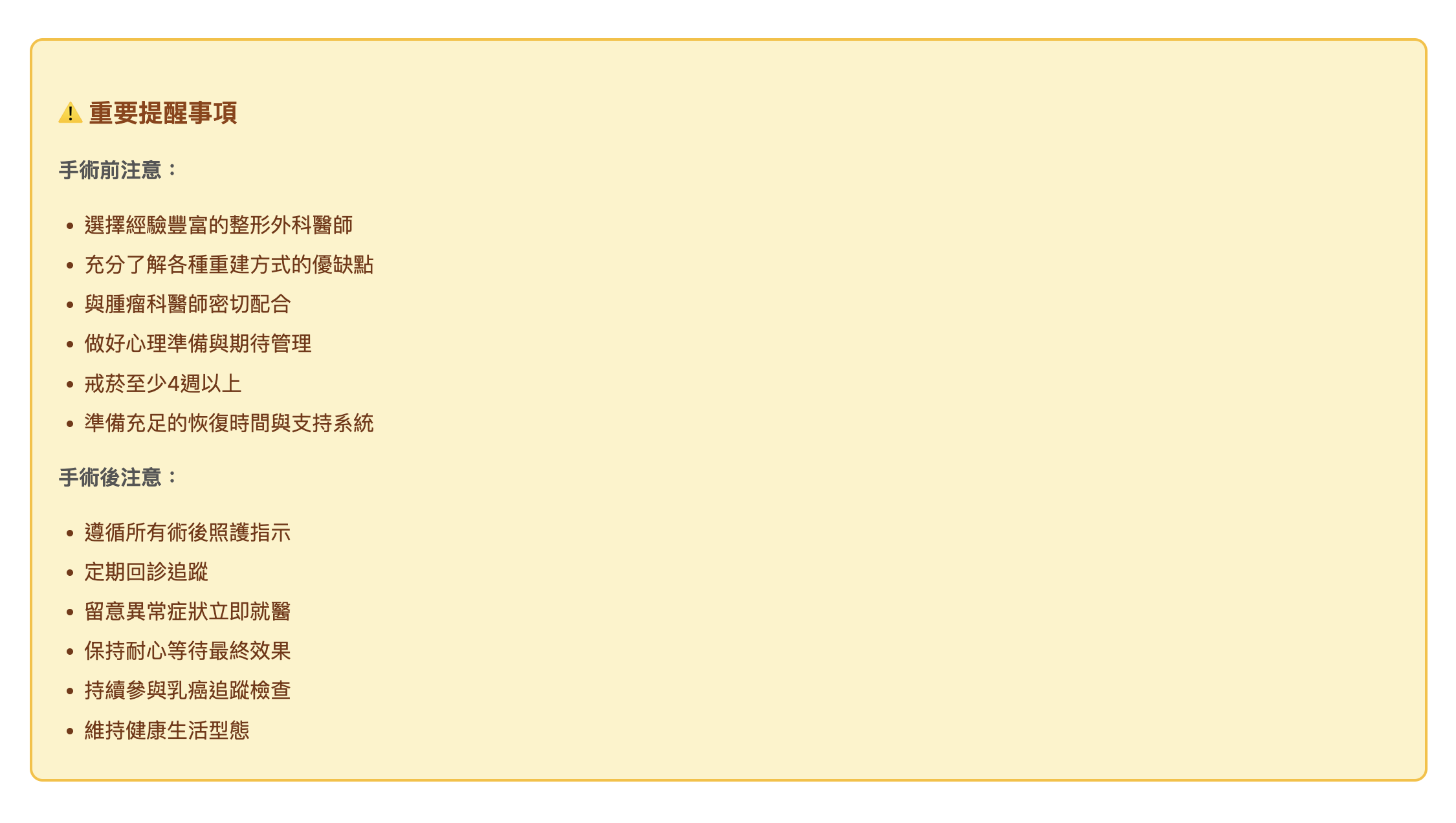 乳房重建手術重要提醒事項