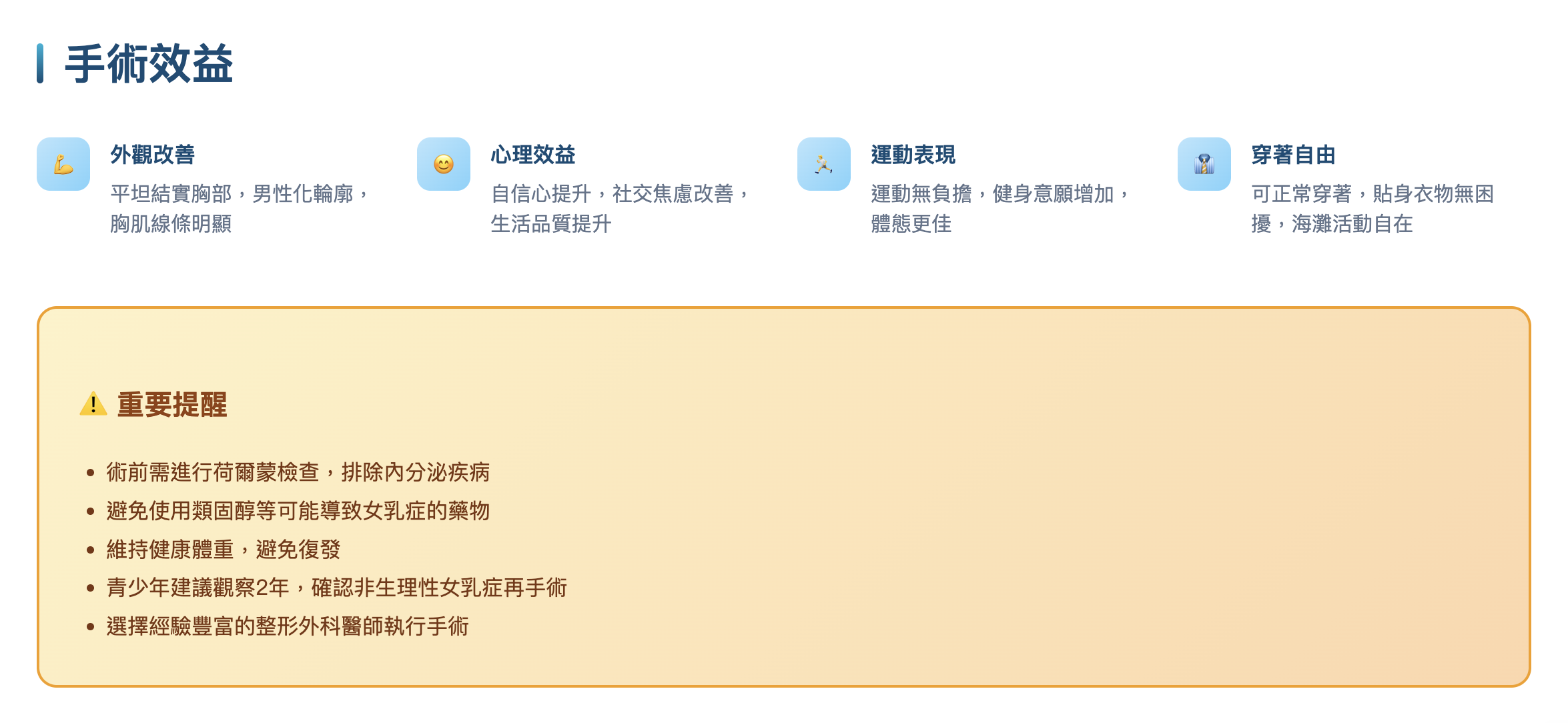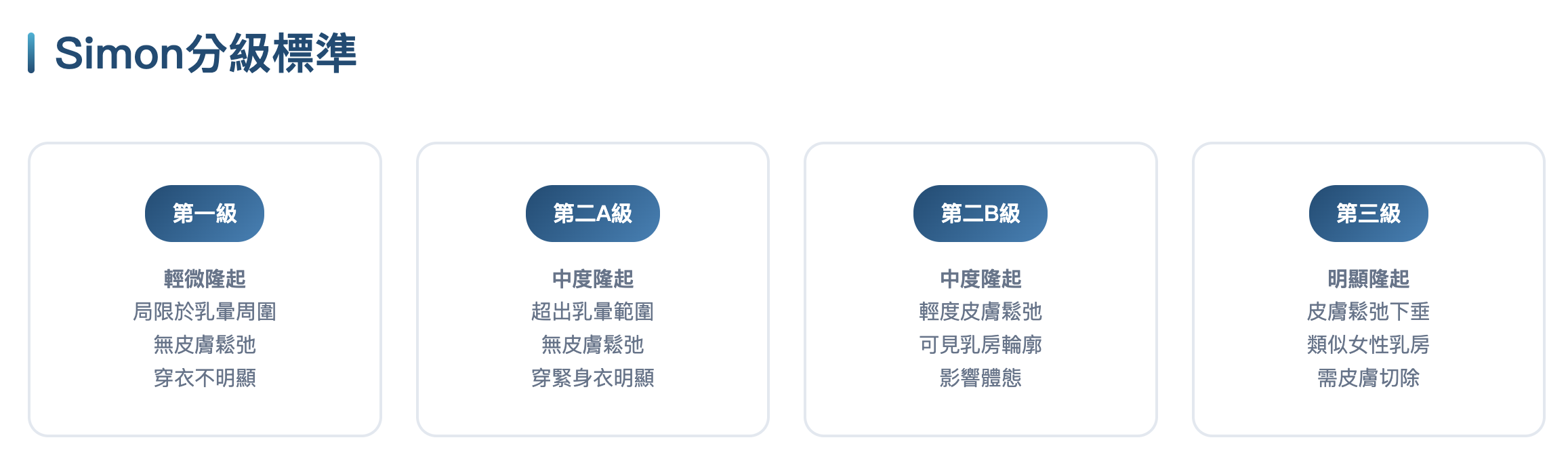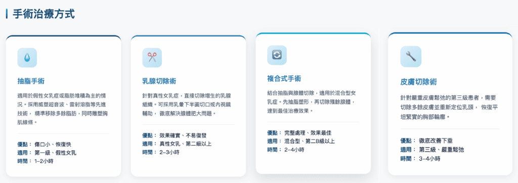 適用對象:假性女乳、第一級、部分第二A級