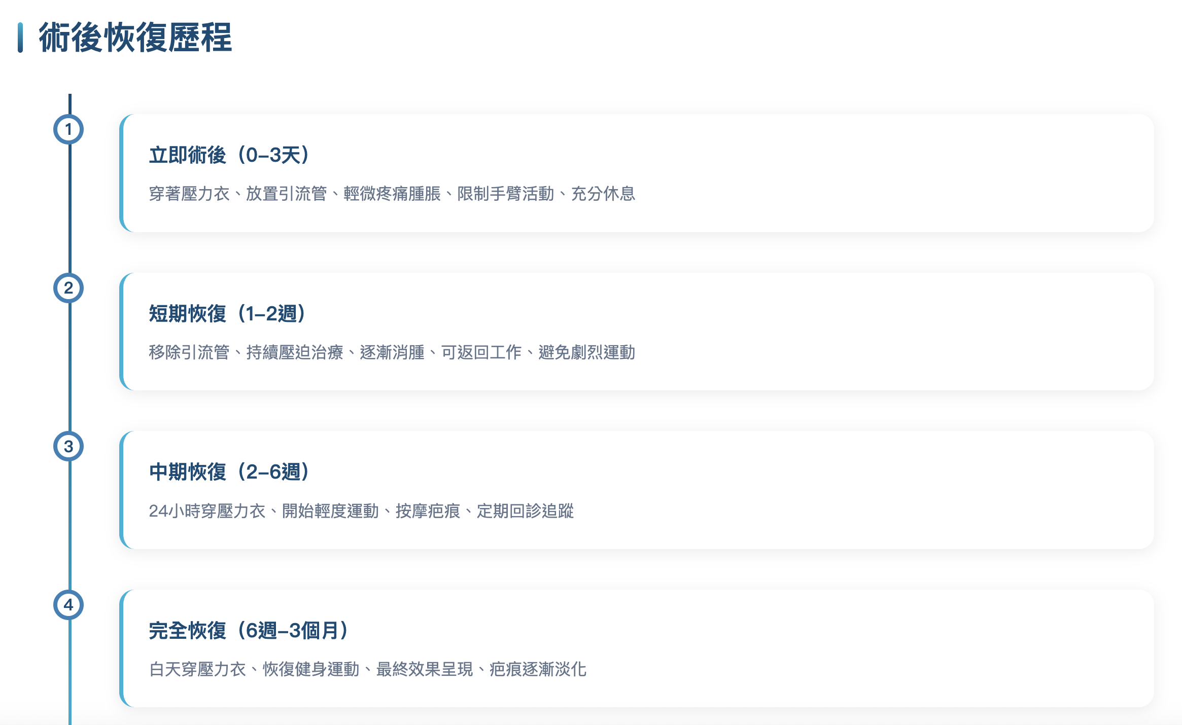 輕度運動2週後開始,重訓健身需等待6週,胸部訓練建議8週後。